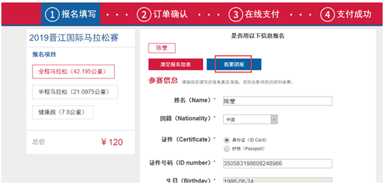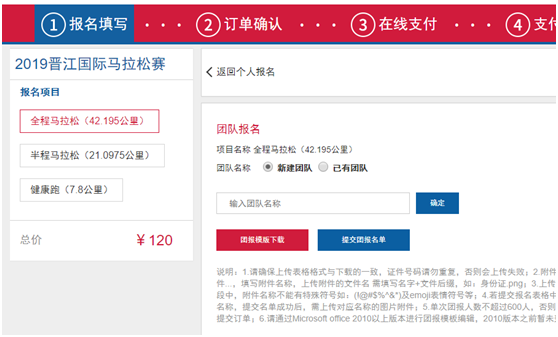 第四步:提交团报名单,系统根据参赛人数自动计算价格,提交订单缴费即可。