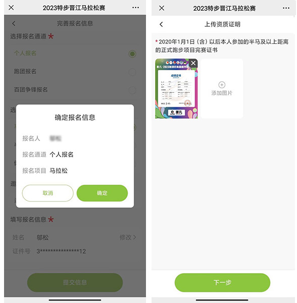 阅读报名须知、风险提示后选择比赛项目,按说明填写参赛信息,确认报名信息,按项目要求上传资质证明文件。