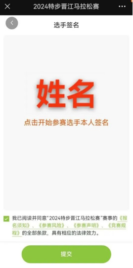 阅读参赛声明,签署姓名,支付订单,完成报名流程(等待审核通过,审核未通过选手将收到短信通知报名截止前重新提交符合要求的证明材料或在领物时现场携带符合要求的证明材料,方可领取参赛装备。
