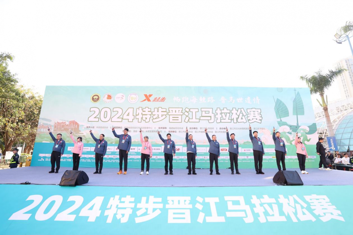 福建省委宣传部副部长,福建日报社(报业集团)党组书记、社长陈辉宗,泉州市委常委、晋江市委书记张文贤,中国田径协会特邀副主席、特步集团董事局主席兼CEO丁水波,福建日报社(报业集团)党组成员、副总编辑任君翔,晋江市委副书记、市长王明元,福建省田径自行车运动管理中心主任梁学仁,泉州市体育局党组书记郑宏谋,晋江市委常委、宣传部部长黄少伟,晋江市副市长吴尊意,特步电商产品中心总监、晋马推荐官丁佳敏,晋江市文化体育和旅游局党组书记、局长蔡惠琼,晋江经济报社副总编辑方锦枞为大赛鸣枪。
