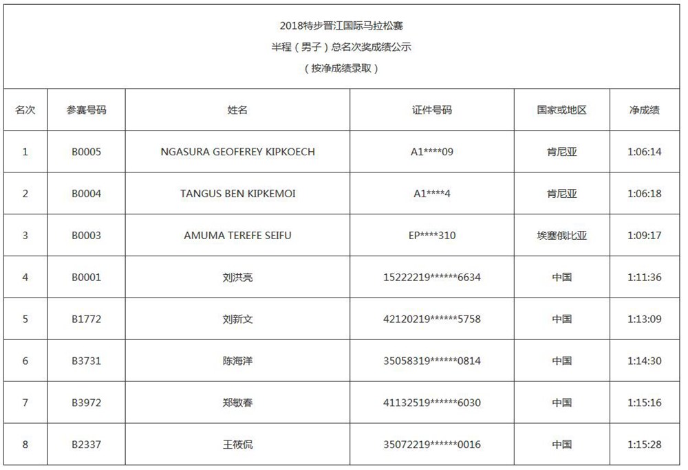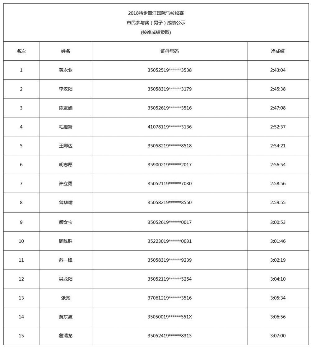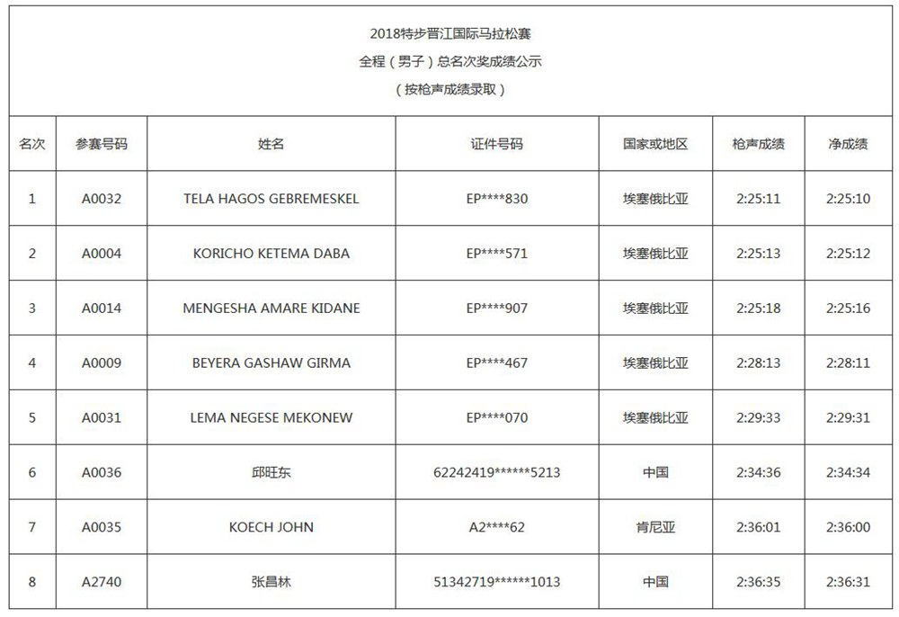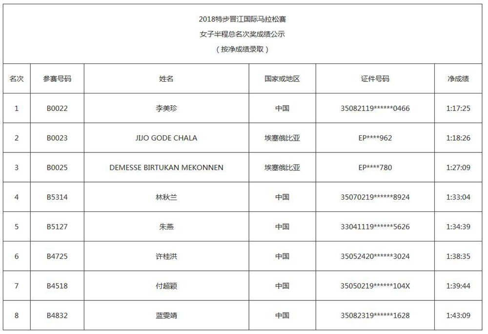 2018特步晋江国际马拉松赛成绩,经过10个工作日的公示,现正式公布2018特步晋江国际马拉松赛获奖名单。