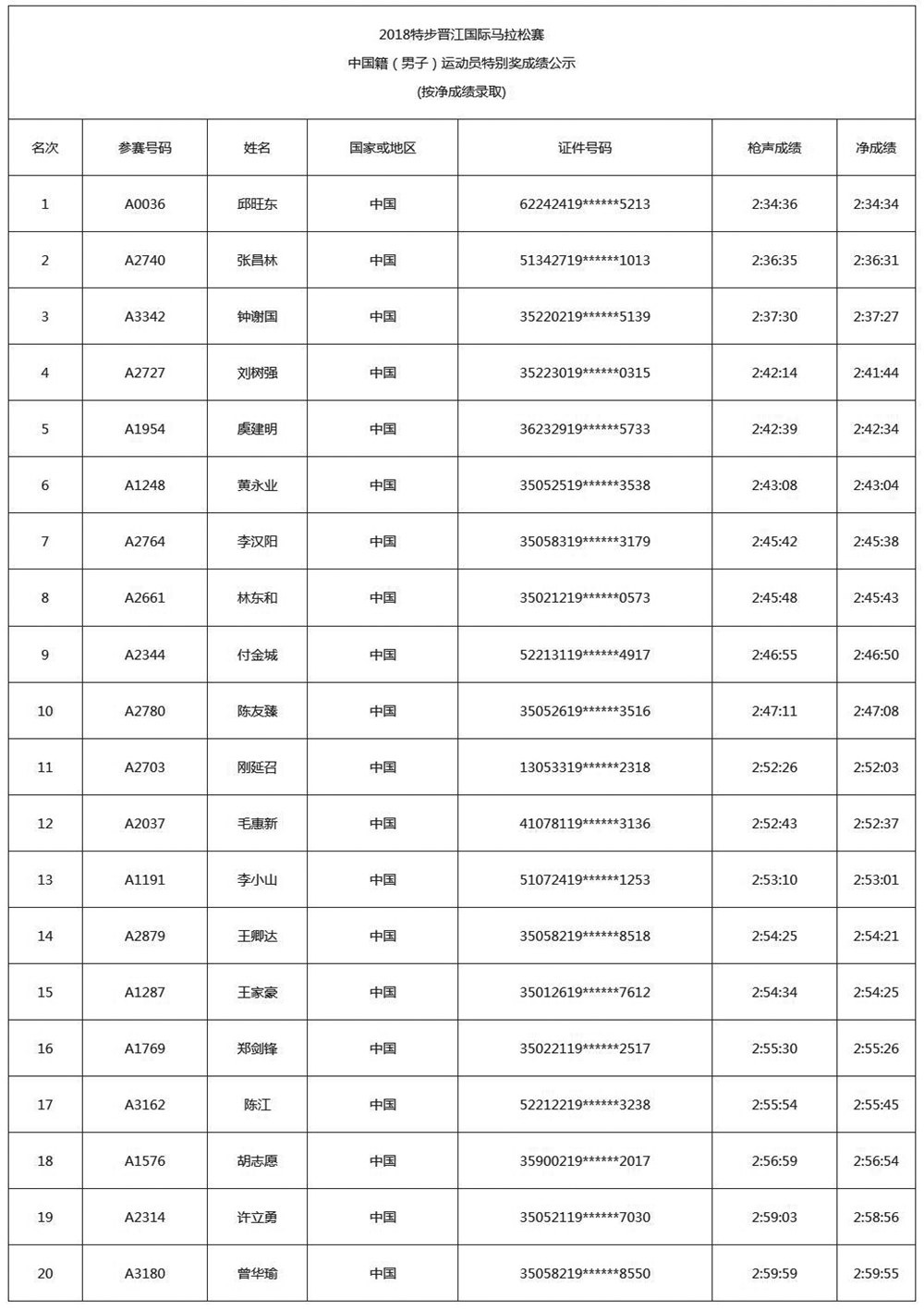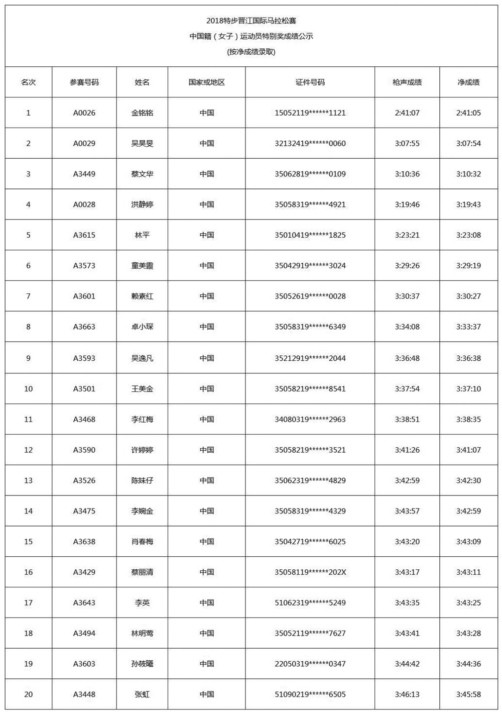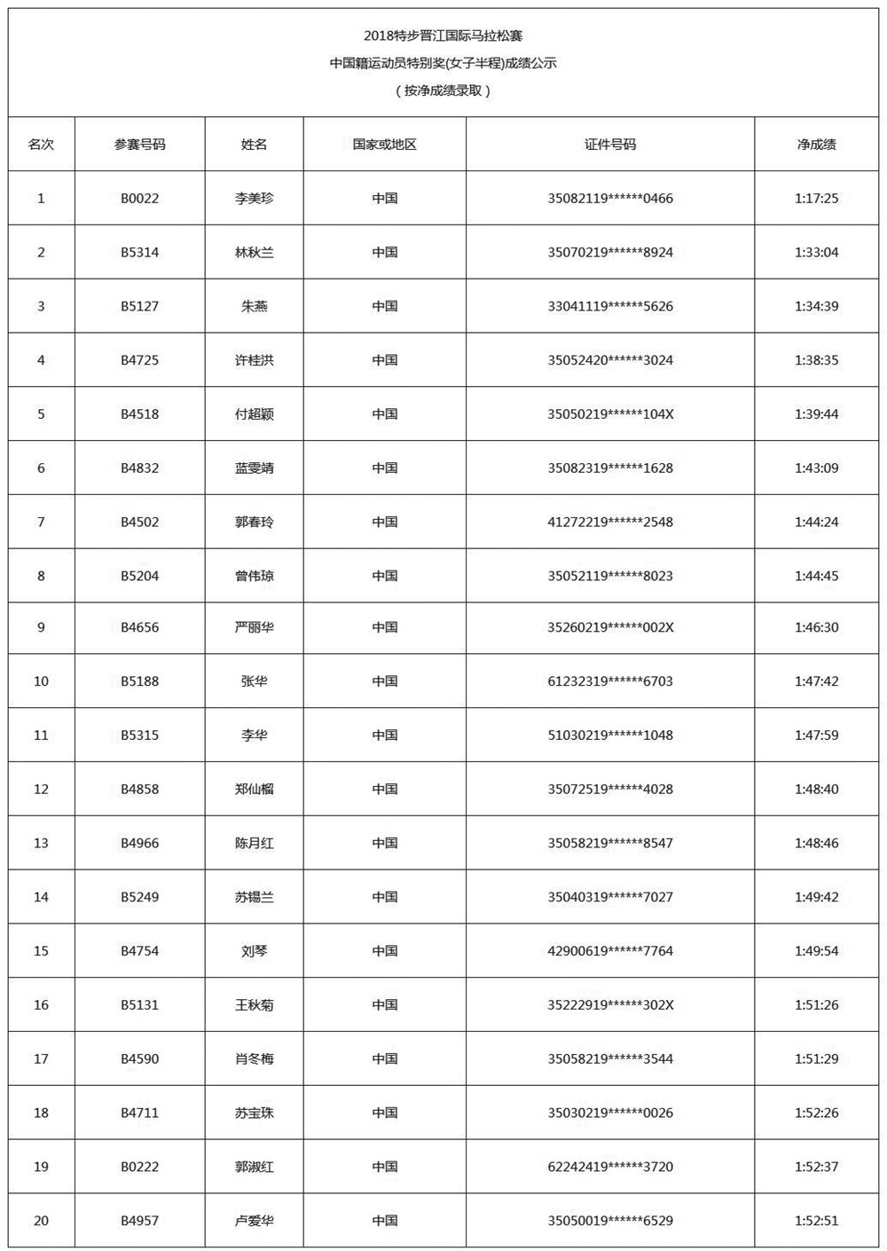 2018特步晋江国际马拉松赛成绩,经过10个工作日的公示,现正式公布2018特步晋江国际马拉松赛获奖名单。