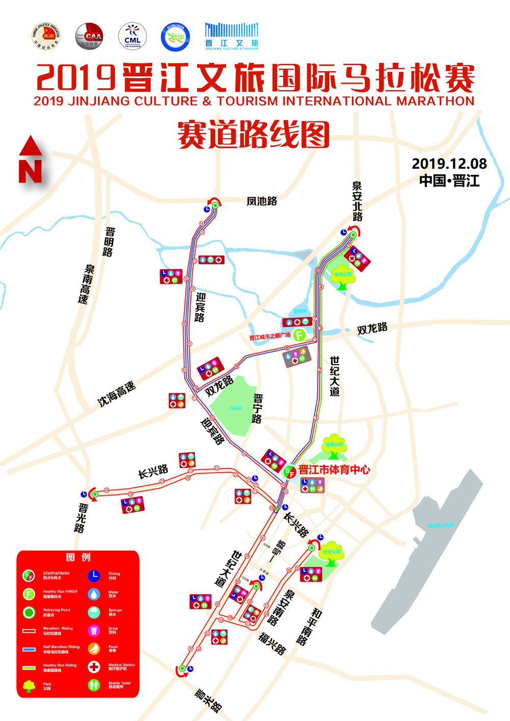为了更好地营造赛事氛围,提升参赛选手的参赛体验,并尽最大可能减少对公共交通的影响,根据实际情况,现就2019晋江国际马拉松赛部分路线进行微调,将全程马拉松和半程马拉松的终点设置在一起,调整后的线路为: