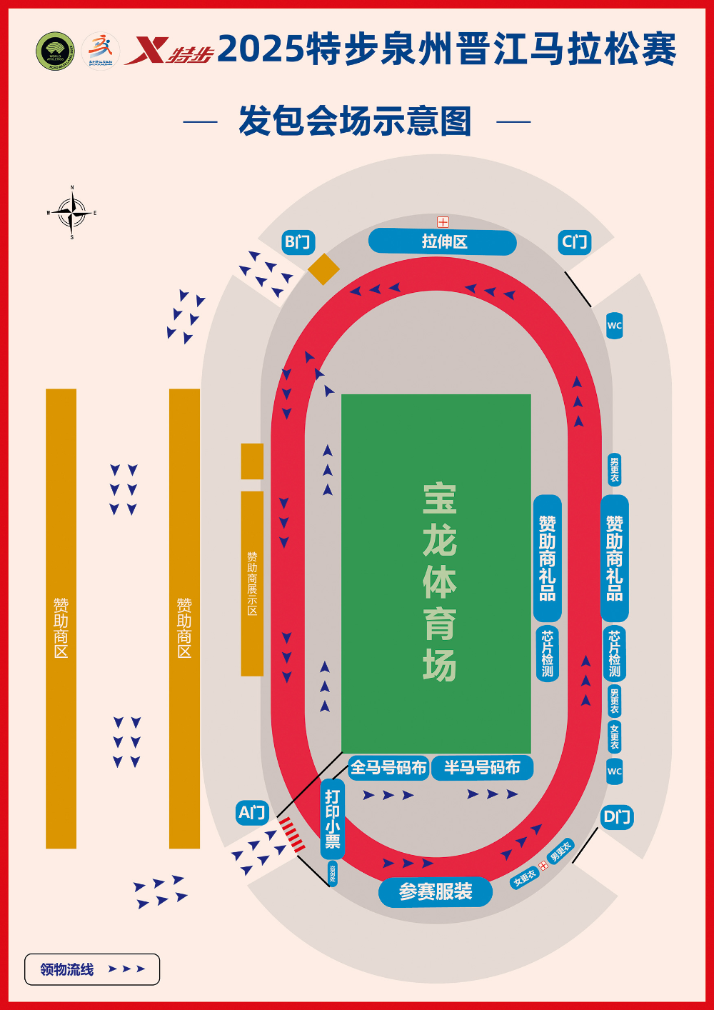 今日10:00,2025特步泉州晋江马拉松赛参赛物资领取工作正式启动。12月4日至6日,请参赛选手本人携带身份证件原件,到晋江市体育中心宝龙体育场领取参赛物资。