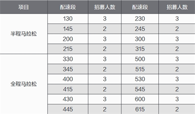 据赛事组委会介绍,本次比赛公开征集50名“兔子”。其中,半程马拉松招募8个时段的“兔子”,分别是“130兔子”“145兔子”“200兔子”“215兔子”“230兔子”“245兔子”“300兔子”“315兔子”;全程马拉松招募12个时段的“兔子”,分别是“330兔子”“345兔子”“400兔子”“415兔子”“430兔子”“445兔子”“500兔子”“515兔子”“530兔子”“545兔子”“600兔子”“615兔子”(各时段具体招募人数详见表格)。