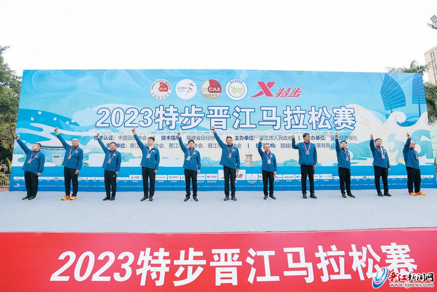 中国田径协会副主席甄国栋,福建日报社副社长吴孝武,泉州市委常委、晋江市委书记张文贤,福建省田径自行车运动管理中心主任梁学仁,泉州市体育局党组书记郑宏谋,晋江市委副书记、市长王明元,晋江市委常委、宣传部长黄少伟,晋江市副市长吴尊意,特步事业群CEO田忠,晋江经济报社总编辑吴美章,晋江马拉松主题曲词作者杨都海为大赛鸣枪。