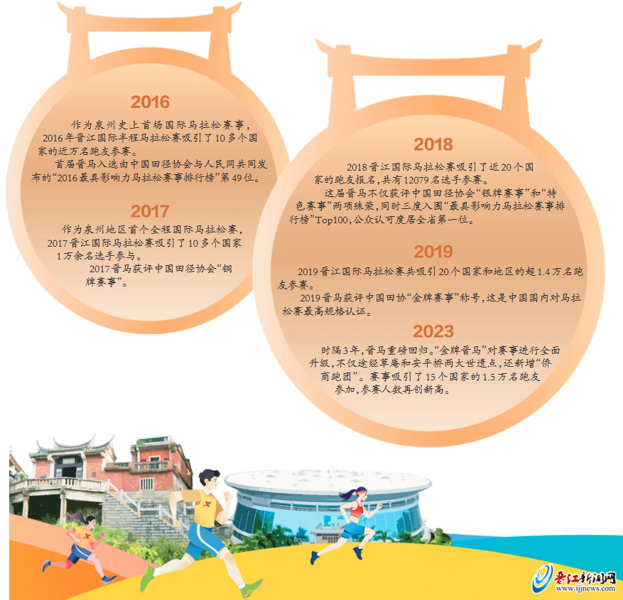 畅跑海丝路,晋马世遗情。今年晋马的主赛道途经晋江市体育中心、万达广场、晋江文化中心、晋江市展馆、晋江市足球训练中心、草庵、安平桥等晋江地标。开跑前,2023特步晋江马拉松赛形象大使许晋杭现场演唱晋马主题曲《这里真好》,舞狮、啦啦操、高甲戏等表演点燃跑友热情。