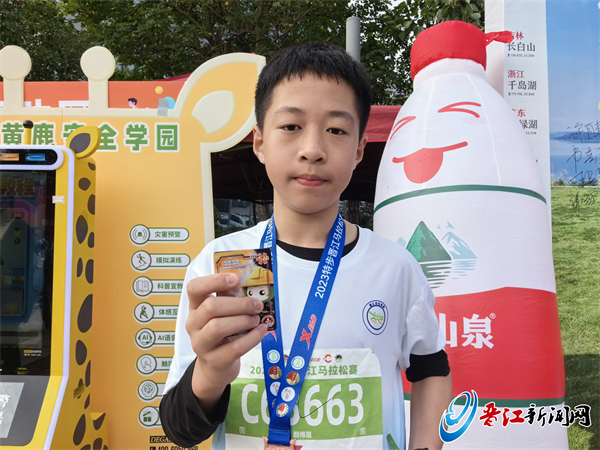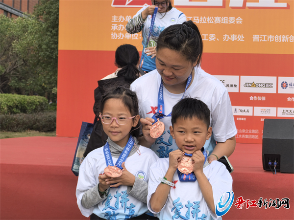 赛道上,路边观众的助威声、志愿者的加油声、表演者的歌声,都说明晋江是一个好客又有激情的城市。有了这些鼓励,我一直往前跑,跟妈妈一起跑到了终点。之后的晋马我还会继续参加!