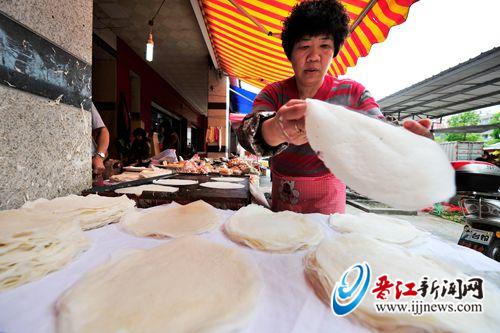 梅岭综合市场门口,庄阿姨的润饼皮生意很火