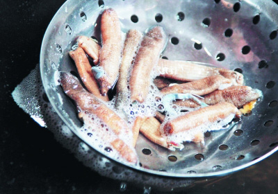 2.洗土笋的时候一定要多次清洗,如果洗不干净会影响土笋冻的味道,吃下去也不健康。