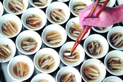 在肖老板的店里,记者看到买土笋冻的顾客络绎不绝,生意非常好。他道出秘诀:“买不到新鲜的土笋我们宁可歇业也不做,不然就砸了自己的招牌。”