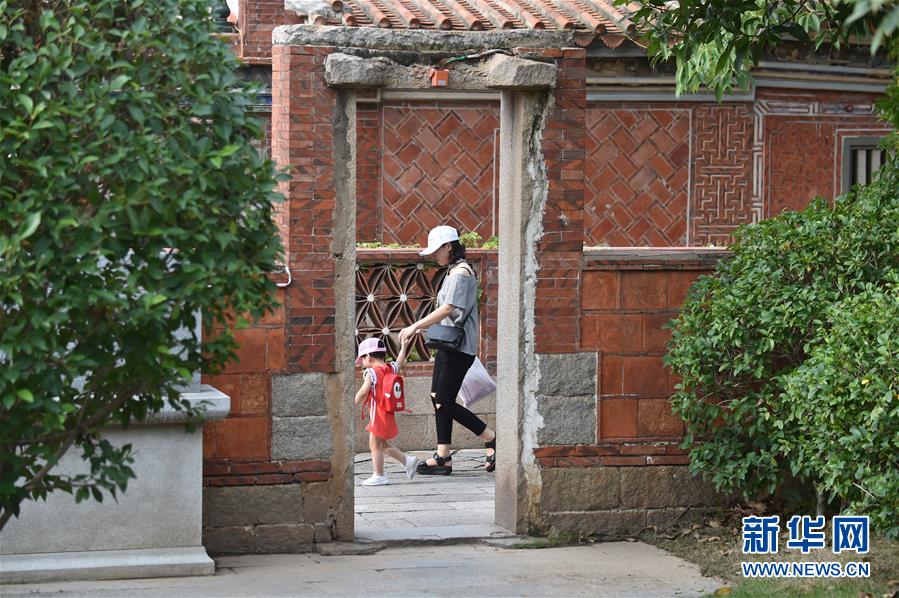 市民带着孩子在福建晋江五店市传统街区散步(6月20日摄)。新华社记者 宋为伟 摄